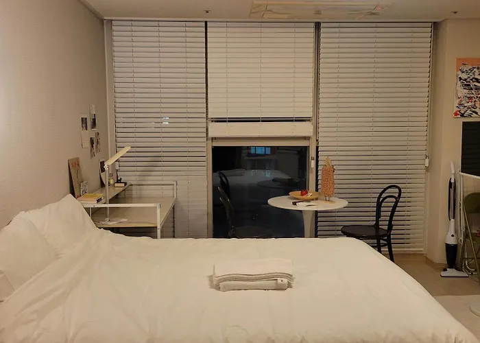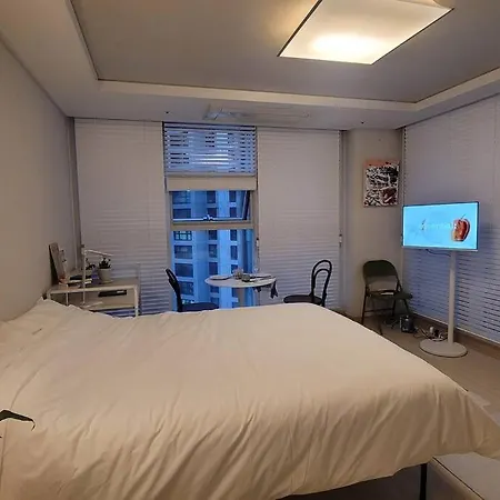 The apartment is equipped with self-catering amenities such as an electric kettle, a fridge, and glassware, providing guests with the opportunity to prepare their own meals. Hyundai 4th Apartment bus stop is merely 200 metres away, and Sapyeong underground station lies merely 0.6 km away.